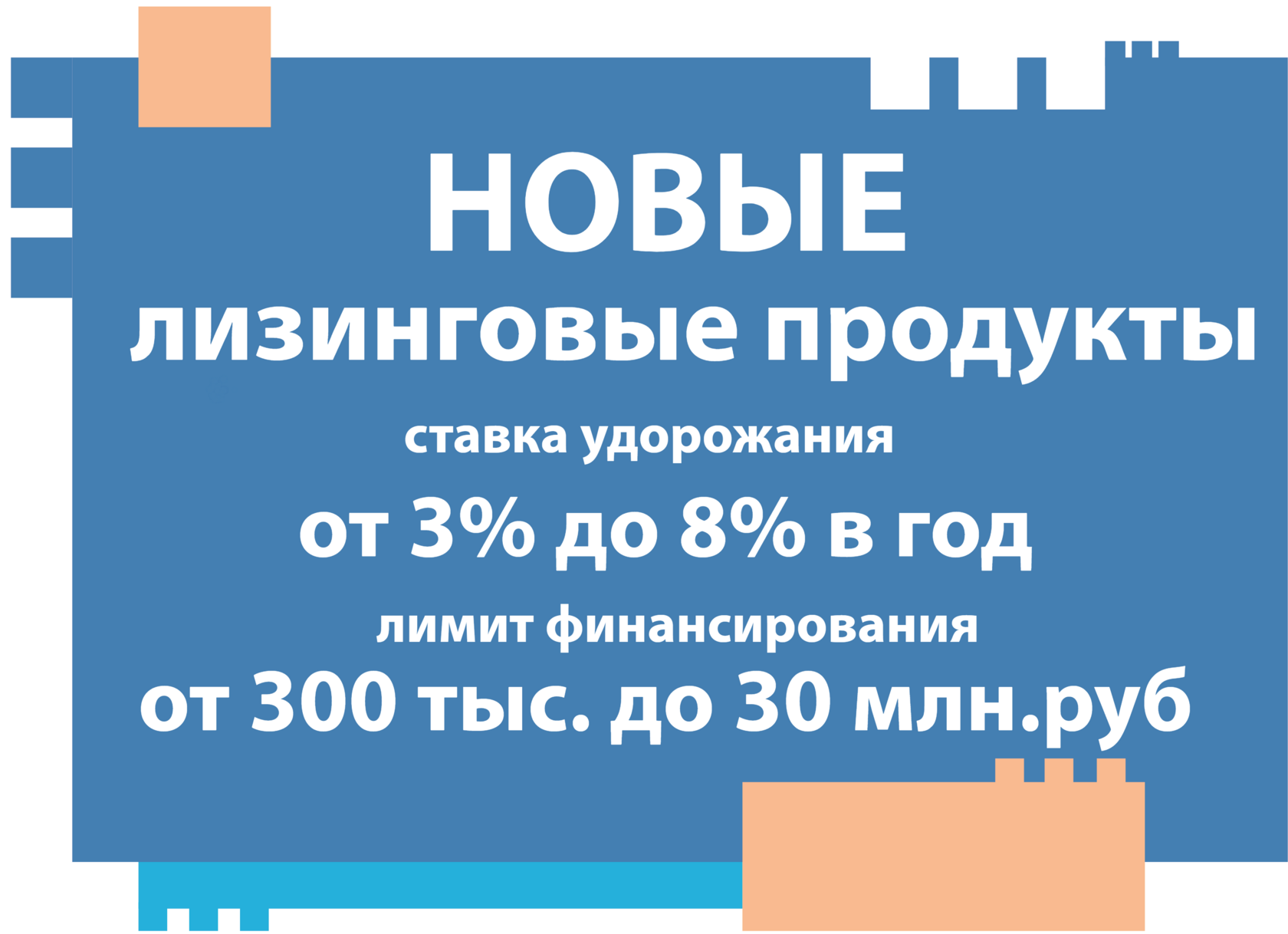 Новый лизинговый продукт «Для СВОих» был разработан специально для юридических лиц, в состав учредителей (участников, членов, акционеров) которых входит физическое лицо - участник СВО, и индивидуальных предпринимателей, являющихся участниками СВО или членами их семей. В рамках данного продукта финансирование предоставляется на любое имущество, в том числе и на коммерческую или складскую недвижимость с максимальным лимитом до 30 млн. рублей по ставке удорожания 3% в год.